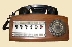 Above left: an unusual and rare wall model. Courtesy Peter Balch. Above centre: Detail of the Fuld handset and cradle Above right: British HL30/1 16-key substation with handset and cradle in walnut bakelite. Late 1930’s - 1940’s A Motor Dictograph was introduced in the 1920s in the U.S. for communication between a limousine driver and his passengers. The company claimed proudly that it was "standard equipment in practically every well known American production of high-grade chauffeur-driven motor cars, including Pierce Arrow, Packard, Cadillac, Hudson, Winton, .." etc. The Metrophone faceplate was, of course, plated in silver. In a U.S. catalogue of the early 1920s, it is noted that the Dictograph system was now sold outright, not rented. This was a change of policy that was not followed in Europe. The catalogue also notes sales to Japan, Australia, Russia, Norway, Denmark , and South America. In the final post-WW2 range the Fulhandset and cradle on European phones took on a softer more rounded shape. The master consoles were in stained pine, or later in a plastic veneer. The transmitter and receiver were behind plain grilles, and powered by a small valve amplifier. In the last versions the handset was moved to the side of the case. A T&N dial was retrofitted to some, usually by fixing a rather clumsy mount in front of the pedestal. These were sometimes marketed as TeleMatic (following their buyout by Telephone Rentals in 1967) or Dictomatic. Production in the United States appears to have ceased about this time.