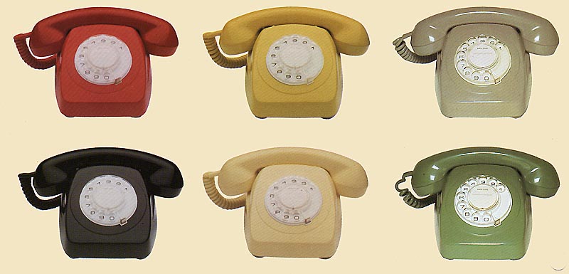 801 / 802 Colour range : Top Row: Lacquer Red, Topaz Yellow, Mist Grey Bottom Row: Black, Light Ivory, Fern Green. From Telecom Product manual, approx. 1976 Light Ivory was the most popular color. Mist Grey was extremely unpopular and was mostly used as a base for the modified phones produced for other purposes. It was intended as a standard office color. Lacquer Red found a small market among customers who preferred a stronger color, as did Fern Green. Topaz Yellow was probably the second most popular choice after Ivory, but in strong sunlight it was found to suffer the fading problem that has haunted Australian phones from the first bakelite models. The black colour was rarely listed in the brochures, although it was issued in both 801 and 802. This reflected a small but steady demand for what was really a rather attractive phone. An extremely rare version was also produced in a clear case for training and display. In Melbourne
