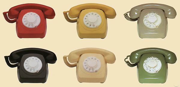 800 Series ACF (Automatic ColorFone)Released in 1962 in the PMG days, this phone was an Australian-designed model taking advantage of modern plastics and electronics. The original version, the 801 series, is distinguished by having the numbers around the outside of the dial. There were actually three dials used in the range as a standard Australian dial was not yet being manufactured. Each dial came with an adapter plate with the numbers correctly located for that model of dial. When the standard dial became available in 1970 there was a minor update and the the numbers were moved under the fingerholes and the new range designated 802 series. This did away with the need for the adapter plate. This caused some problems for the visually impaired and Telecom released a Large Number Ring, a plastic ring with raised black numbers which simply stuck on to the face of the phone around the dial. Many models were derived from this basic phone. Some examples are listed on the next page. There are more details of the 800 series in Australian Post Office section.