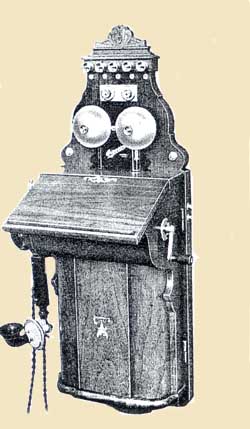 Telephone No. 1 - "Commonwealth Ericsson" The handset and transmitter were connected in parallel rather than in series. The line terminals on the earliest versions were in lacquered brass, but this was changed to nickel plate. Line fuses were mounted internally. Model AB530 had a 4-magnet generator and a ringer resistance of 300 ohms. Model AB535 had a 4-magnet generator and a ringer resistance of 1000 ohms Model AB590 had a 5-magnet generator and a ringer resistance of 2000 ohms Earliest versions had a spearpoint crest, which seems to have been rather fragile. It was changed to a carved fleur-de-lis type crest, until about 1904 when it was changed to the simple stamped (?) crest as shown. The phones can be dated accurately from the serial number, which is stamped into the front edge of the shelf and covered by the door when it is closed. A list of serial numbers matched to dates of production is here. The timber was usually walnut, but oak was also used occasionally. Veneer was not used. The woodwork was french polished to a high gloss. Until about 1904 the transfer on the battery cover was a plain Skeletal phone logo, but after this it was changed to the one shown with "L M Ericsson" and "Stockholm" at top and bottom. The battery cover was painted in a woodgrain finish with a wooden insert down the centre until about 1904, when it was changed to the all-steel cover . Bells were always nickel plated, never polished brass, with a raised dimple around the mounting hole. Supplies came direct from Sweden for many years as the British Ericsson company had not yet been established. They were installed until the 1920s, when supplies of the Type 35MW British Ericsson arrived in quantity. The final deliveries came from Britain, and had an "Ericsson England" transfer on the bell motor cover. The handset ranged from the early version with thick grooves on the grip to the 1904 model with fine-grooved ebonite grip and the slimmer transmitter. The cords were brown or green in a plaited multistrand design, and terminated on a 4-pin plug. Some phones were fitted with an extra "bullring" or "mother in law" receiver , connected to the right hand side of the case and hung from the hook under the wriiting slope. The hook was not provided on all phones. In the early years, customers were expected to provide their own instruments if they were more than a certain distance from the telephone exchange (eight miles, I believe). This may have been a measure of how far a Telephone Mechanic could travel by horse in a day (and still be back at the pub by knockoff time). Some of the best examples I have seen were privately purchased and lovingly maintained for nearly a century. The phone gave excellent service, being able to work across very long, poor standard rural phone lines. It managed to survive lightning strikes well, and needed little maintenance apart from replacement batteries every so often. A surprisingly large number survived well into the 1980s and even the early 90s, when automation finally made them redundant. About the only major problem they had was cracking of the timber panels in the dry heat of the Australian summer. The phone was renumbered Type 131MW in the late 1930s.