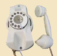 L to R: K8056, a particularly ugly steel mining phone; K8387 Gecophone, a redesigned and restyled version of the K7855. Muraphone, a rugged bakelite wallphone also available in Ivory.