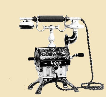 Left: Ericsson "Skeletal" phone, 1892. Although this is known to U.S. collectors as an "Eiffel Tower", we will refer to it here as a Skeletal to differentiate it from the BTMC / Western Electric "Eiffel Tower".