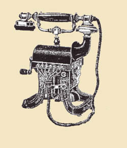 BTMC bought a factory at Woolwich near London. Following retooling the factory opened in 1898 under the new Western Electric name. The Eiffel Tower was featured prominently in their catalogs and advertising. It was generally unchanged from the BTMC model, although it had the new stronger cradle. The phone was probably assembled from imported BTMC parts for some time, and sold as model 5715. General Electric and (after 1910) Peel-Conner were also building parts for Western Electric. The price dropped to four pounds thirteen shillings, or four pounds fourteen and sixpence for the bridging (party line) model with a condenser. Following another transmitter upgrade to a revised form of the solid back transmitter, the model number was changed again to 40047 and the price went up to five pounds. The date of this change is uncertain, but it was probably around 1914 when supplies from the Antwerp factory were interrupted by World War 1. British Western Electric supplied many of the colonial administrations such as Australia. In Australia many phones were stamped with Government markings such as C crown G in an oval for the new Commonwealth Government, or GR for Government Railways.These phones were mostly inherited from the previous colonial governments, and the new Australian Post Office did not continue purchases. They preferred the Ericsson Skeletal as the standard desk phone, and the candlestick styles. Above: British Western Electric advertising, 1902. (3)