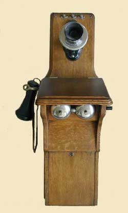 Left: An alternative model of magneto phone, in the less popular "tombstone" style.