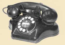 Left: Model 725 Desk Phone Centre: Model 700 Masterphone Right: Model 925 auto Masterphone From the end of World War One, matters between American Bell and the independent telephone companies settled down somewhat. The Bell network concentrated on improving its service in the face of increasing public hostility over prices and quality. The independents continued to grow steadily. The Depression caused a lull in development, but Kellogg came out of it with a new range of telephones using a new compound - bakelite. The first fully moulded phones were introduced around 1933. Their F725 desk phone and F301 candlestick phone also marked their entry into the new automatic telephones. They added an automatic switching system, the Relaymatic, to their range in 1939. They added Ericssons' Crossbar to the range in 1950. Their F700, F900 and F730 Masterphone range of telephones is a classic of the art deco period.