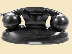 Left: Final all-Kellogg model Right: Auto version In 1905 Kellogg introduced the first handset telephone built by a U.S. manufacturer. It was a compact telephone to take advantage of the new CB exchanges, which did away with the need for bulky batteries in the customer's phone. It served as a more modern alternative to the candlestick phone. They called it the Microtelephone at first, but the name was quickly changed to the GrabAPhone. Initially the phone was mostly built from their own parts and an Ericsson handset. In the later Model F111 they appear to have used the base from an Ericsson candlestick phone, Ericsson cradle and handset. The shaft was covered with a sleeve of bakelite, which they called "Kellite", as used on their candlestick phone. Ericsson or Kellogg brands are found on this bakelite sleeve, so it appears that the phone was a cooperative venture. Within a year or so the GrabAPhone base had been changed to one adapted from Kellogg's F118 candlestick. Kellogg gradually used more and more of their own parts as the phone proved successful. The Ericsson handset was remodeled on less elaborate lines, the terminals enclosed and rounded mountings substituted for Ericsson's pillar mounts. By around 1912 the Ericsson cradle had been replaced with a simpler pressed steel cradle, finished in nickel plate. By the end of the First World War the nickel plate had disappeared and the whole phone was now finished in black japan, a baked enamel finish. In 1918 the Ericsson factory closed and Kellogg bought many of their parts and dies. The GrabAPhone had its weakness. The transmitter was vertical when in use, so it did not give as strong a signal as a transmitter in which the sound applied directly to the diaphragm. The cup on the mouthpiece partly overcame this. The weaker signal did, however, reduce sidetone a bit (sidetone is when the signal from the transmitter feeds back into the receiver). It also used a "retardation coil", which cut down sidetone from the already lower signal. Mounting the transmitter so it was vertical in normal use helped reduce packing of the carbon granules, so this was a plus. (This explanation is from Ralph O Meyer's "Old Time Telephones"). These comments sum up the reasons for which Western Electric would not introduce handset telephones of their own in quantity until 1927. Western Electric was still using the solid back transmitter, which was bulky and unsuitable for a handset, and a booster circuit that would have increased feedback. The GrabAPhone gave Kellogg a technical lead over Western Electric, and introduced more Americans to handset phones.. In 1932 George Eaton, a Kellogg engineer, patented a "non-positional" transmitter that resolved the packing problems and made handsets a simple and trouble free proposition for Kellogg.This patent was soon licensed to other manufacturers in competition with Western Electric, and marked the end of the separate transmitter/receiver in the United States.