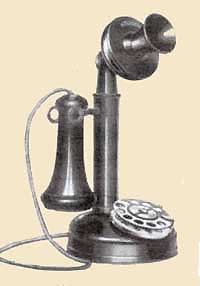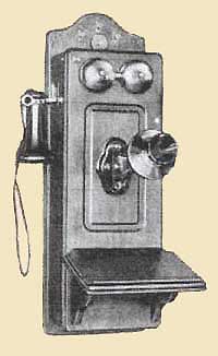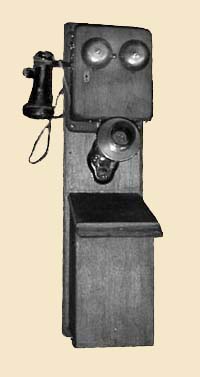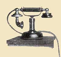 Early phones were often built into elaborate tables to improve their appearance. Early 1900s.