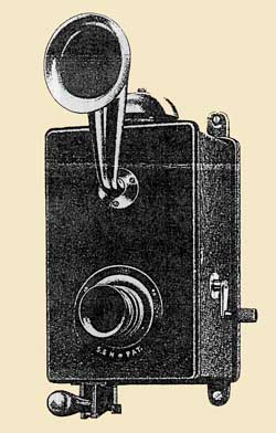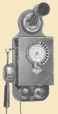 Above: CB wallphones from the 1912 catalog. Left: Model 4113 Centre: Model 4116, 1911, steel case. Right: Model 4126 buzzer-signalling CB wall phone. These were a Phonopore-style telephone for use over telegraph lines.