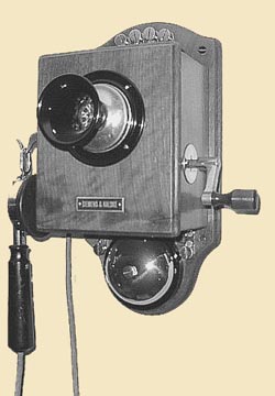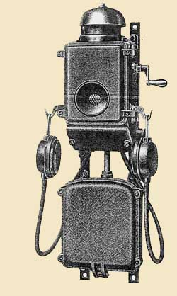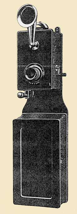 Twin Box Wall Telephone These were made by mounting one of the above wall phones to a backboard/battery box to make a complete telephone. The backboard assembly was sold separately. This model from the 1912 catalog appears to be the only full-sized phone marketed by Siemens & Halske.