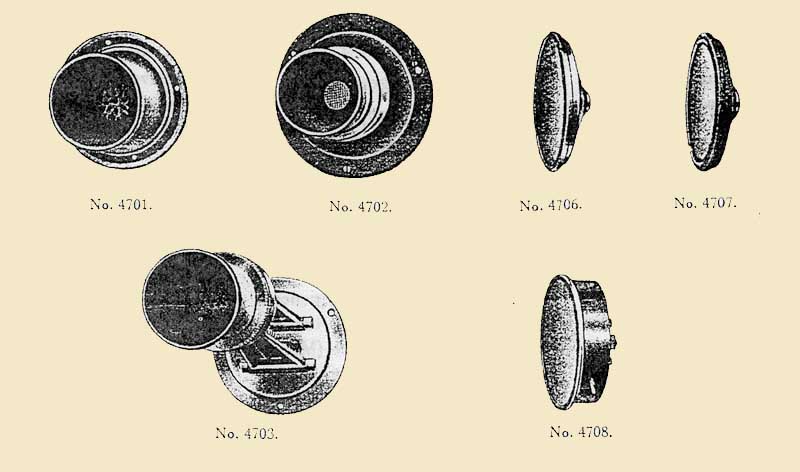 Above: Transmitter range from 1912 catalog. The units at top right are the Western Electric capsule transmitter. The No. 4708 appears to be a Hunnings-type transmitter. Transmitter 4703 also uses the WE capsule.